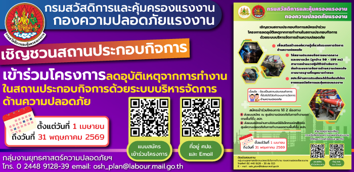 วันพุธที่ ๘ เมษายน ๒๕๖๙ เวลา ๑๓.๐๐ น. นายทวีสิทธิ์ บุญธรรม ผู้อำนวยการกองความปลอดภัยแรงงาน มอบหมาย นางสาวอุมาพร ครองสกุลสุข ผู้เชี่ยวชาญเฉพาะด้านความปลอดภัยแรงงาน เข้าตรวจติดตามการดำเนินงานด้านความปลอดภัยในการทำงาน และการสร้างเสริมสุขภาวะองค์กร ของบริษัท ไทยโคโคนัท จำกัด (มหาชน) จังหวัดราชบุรี ภายใต้โครงการพัฒนากลไกการสร้างเสริมสุขภาวะในองค์กร ผ่านศูนย์ความปลอดภัยในการทำงาน โดยมี นายพงษ์ศักดิ์ ธงรัตนะ ผู้อำนวยการสำนักสนับสนุนสุขภาวะองค์กร ร่วมนำคณะทำงานเข้าตรวจติดตามฯ พร้อมด้วย นายกฤตผล แก่นนาคำ สวัสดิการและคุ้มครองแรงงานจังหวัดราชบุรี นางสาวรัชดาวรรณ น้อยพานิช ผู้อำนวยการศูนย์ความปลอดภัยในการทำงานเขต ๗ และเจ้าหน้าที่ที่เกี่ยวข้อง ณ บริษัท ไทยโคโคนัท จำกัด (มหาชน) จังหวัดราชบุรี โดยมี นางมานิตย์ ช้างวงค์ ผู้ช่วยผู้จัดการโรงงานและประธาน คปอ. และคณะทำงาน ให้การต้อนรับ