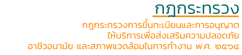 สรุปสาระสำคัญ กฎกระทรวงการขึ้นทะเบียนและการอนุญาตให้บริการ เพื่อส่งเสริมความปลอดภัย อาชีวอนามัย และสภาพแวดล้อมในการทำงาน พ.ศ. ๒๕๖๔