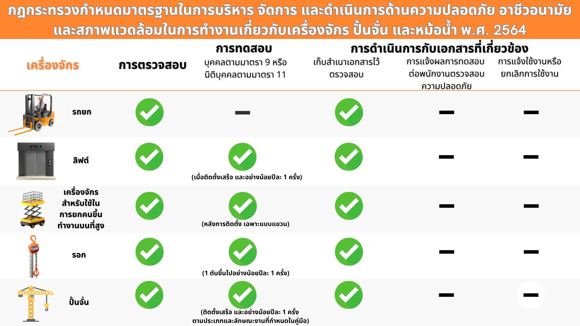 | ข้อ ๗ (๓) | - เป็นเจ้าหน้าที่ความปลอดภัยในการทำงานระดับเทคนิคขั้นสูง หรือระดับวิชาชีพ - มีประสบการณ์ในการทำงานเกี่ยวกับรถยกประเภทนั้น ๆ ไม่น้อยกว่าสามปี - มีประสบการณ์การเป็นวิทยากรบรรยายในหัวข้อวิชาที่เกี่ยวข้องไม่น้อยกว่าสามปี | - หลักฐานการขึ้นทะเบียนเป็นเจ้าหน้าที่ความปลอดภัยในการทำงานต่อกรมสวัสดิการและคุ้มครองแรงงาน - หนังสือรับรองประสบการณ์ในการทำงานเกี่ยวกับรถยกประเภทนั้น ๆ ไม่น้อยกว่าสามปี ซึ่งรับรองโดยนายจ้าง