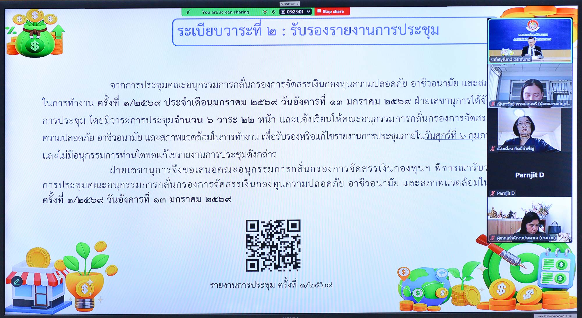 ประชุมคณะอนุกรรมการกลั่นกรองการจัดสรรเงินกองทุนความปลอดภัย อาชีวอนามัย และสภาพแวดล้อมในการทำงาน ครั้งที่ ๒/๒๕๖๙ ประจำเดือนกุมภาพันธ์ ๒๕๖๙