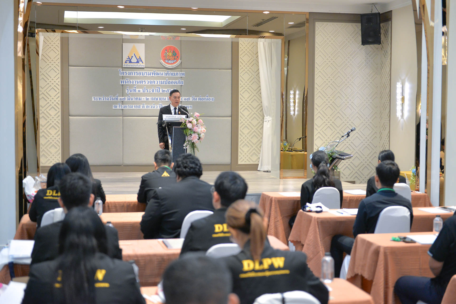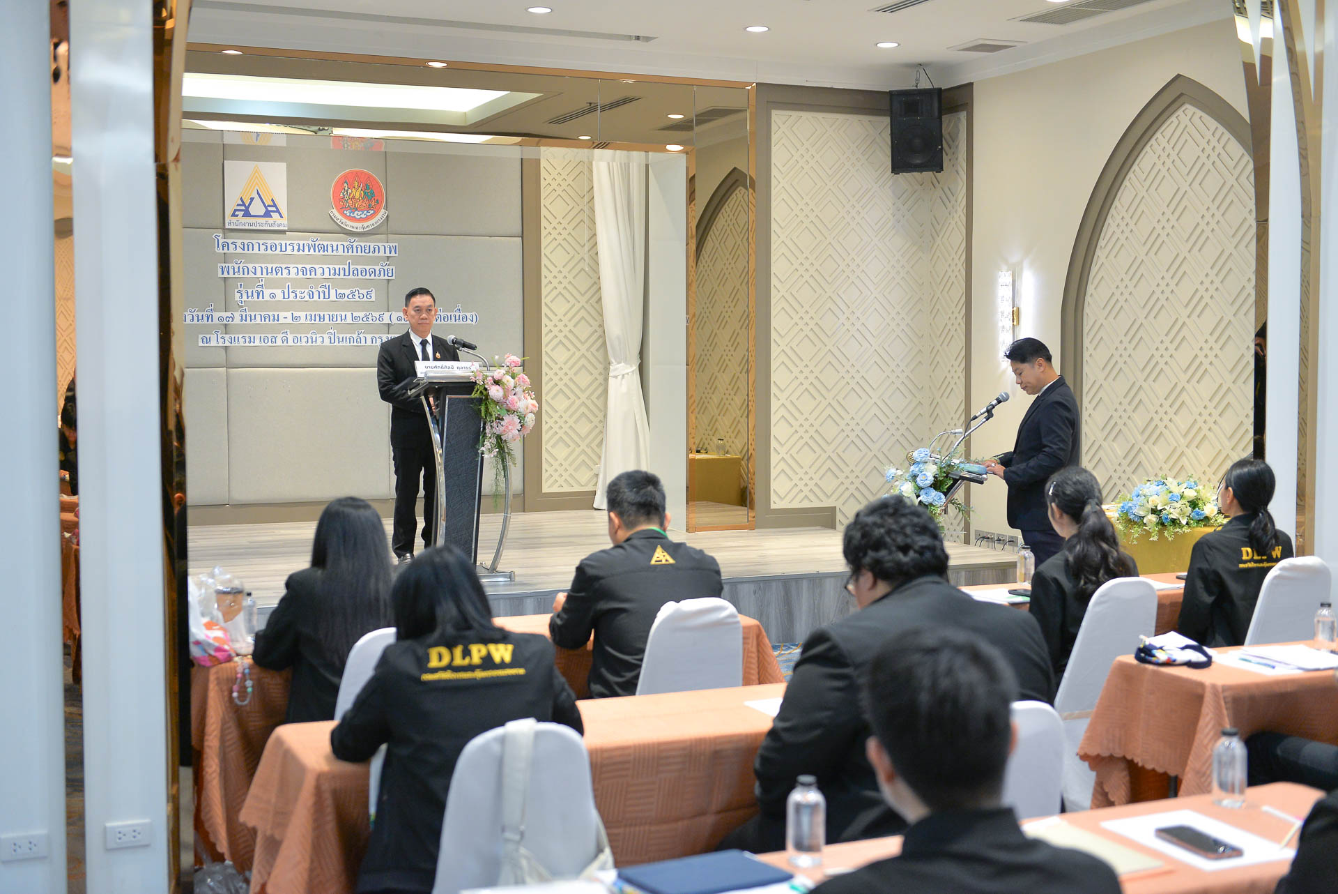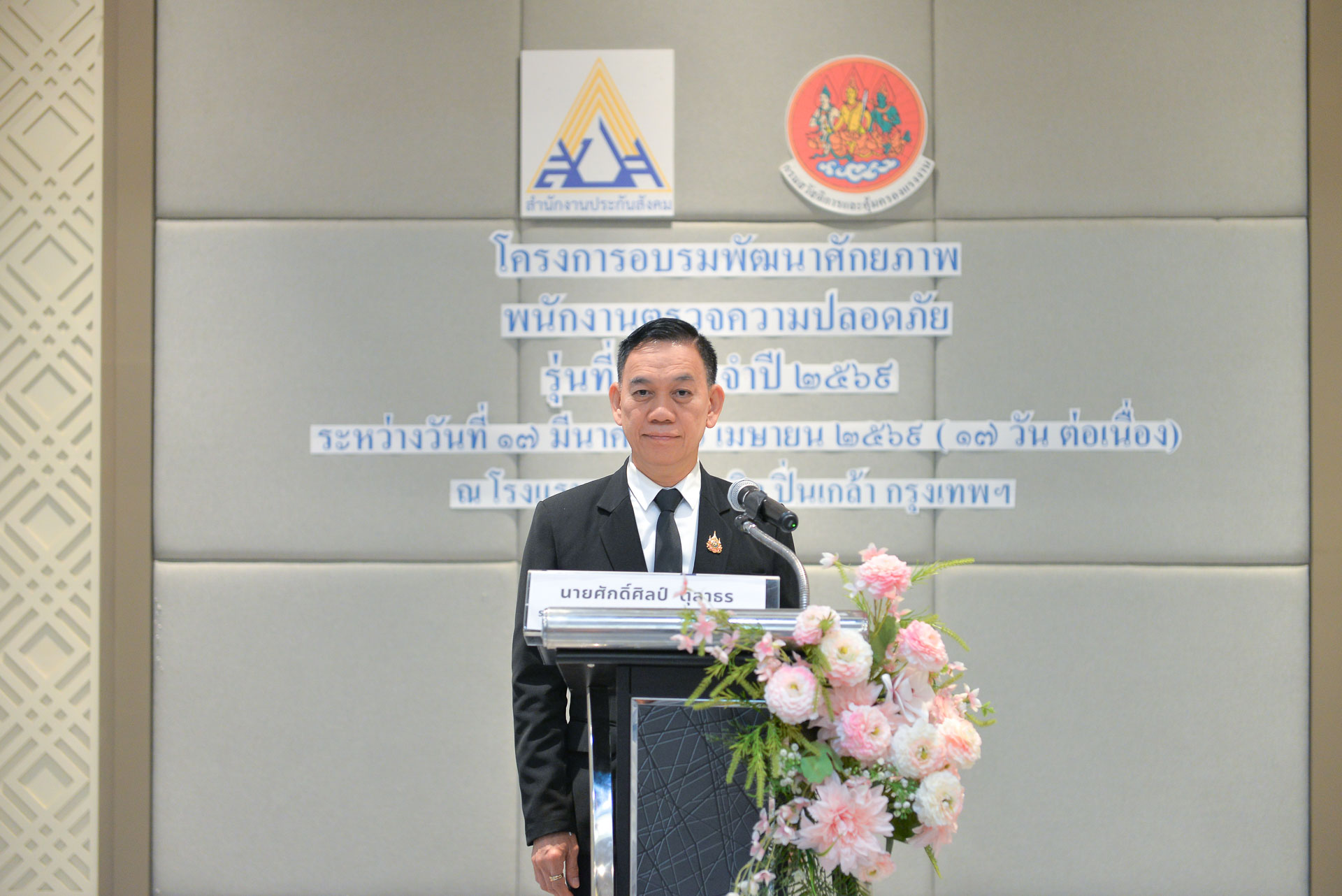 วันอังคารที่ ๑๗ มีนาคม ๒๕๖๙ เวลา ๐๙.๐๐ น. นายทวีสิทธิ์ บุญธรรม ผู้อำนวยการกองความปลอดภัยแรงงาน กล่าวรายงานในพิธีเปิดโครงการอบรมพัฒนาศักยภาพพนักงานตรวจความปลอดภัย รุ่นที่ ๑ ประจำปี ๒๕๖๙ โดยมี นายศักดิ์ศิลป์ ตุลาธร รองอธิบดีกรมสวัสดิการและคุ้มครองแรงงาน เป็นประธานในพิธีเปิด พร้อมด้วย นายพูนทรัพย์ ศรีไพบูลย์ ผู้ตรวจราชการกรม สำนักงานประกันสังคม ผู้อำนวยการสรพ. ๗ ผู้อำนวยการกลุ่มงาน ผู้อำนวยการ ศปข. ๗, ศปข. ๑๑ และเจ้าหน้าที่ที่เกี่ยวข้อง ร่วมเป็นเกียรติ ณ โรงแรมเอส ดี อเวนิว กรุงเทพฯ