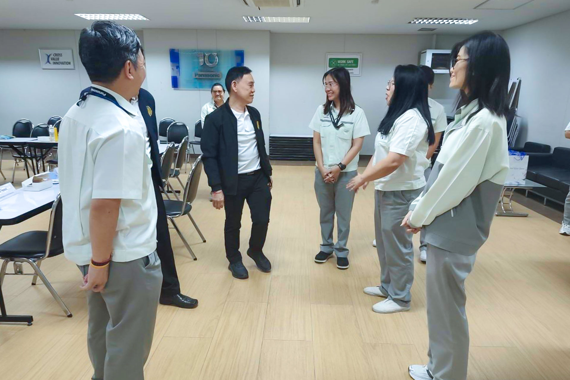 วันอังคารที่ ๒๔ มีนาคม ๒๕๖๙ เวลา ๐๙.๐๐ น. นายทวีสิทธิ์ บุญธรรม ผู้อำนวยการกองความปลอดภัยแรงงาน ร่วมลงพื้นที่ตรวจติดตามการดำเนินงานด้านความปลอดภัยในการทำงาน และการสร้างเสริมสุขภาวะองค์กร ของบริษัท พานาโซนิค แมนูแฟคเจอริ่ง (ประเทศไทย) จํากัด จังหวัดขอนแก่น โดยมี นายศักดิ์ศิลป์ ตุลาธร รองอธิบดีกรมสวัสดิการและคุ้มครองแรงงาน นำคณะทำงานฯ ลงพื้นที่ตรวจติดตามฯ ภายใต้โครงการพัฒนากลไกการสร้างเสริมสุขภาวะในองค์กร ผ่านศูนย์ความปลอดภัยในการทำงาน พร้อมด้วย นายธวัช ไชยเดช สวัสดิการและคุ้มครองแรงงานจังหวัดขอนแก่น นางวนิดา มูลมาตย์ ผู้อำนวยการศูนย์ความปลอดภัยในการทำงานเขต ๔ (จังหวัดอุดรธานี) ร่วมคณะฯ มี นายจิตตภูมิ โควบุตร ผู้ช่วยผู้อำนวยการสายงานบริหาร และเจ้าหน้าที่ ให้การต้อนรับ ณ บริษัท พานาโซนิค แมนูแฟคเจอริ่ง (ประเทศไทย) ตำบลม่วงหวาน อำเภอน้ำพอง จังหวัดขอนแก่น
