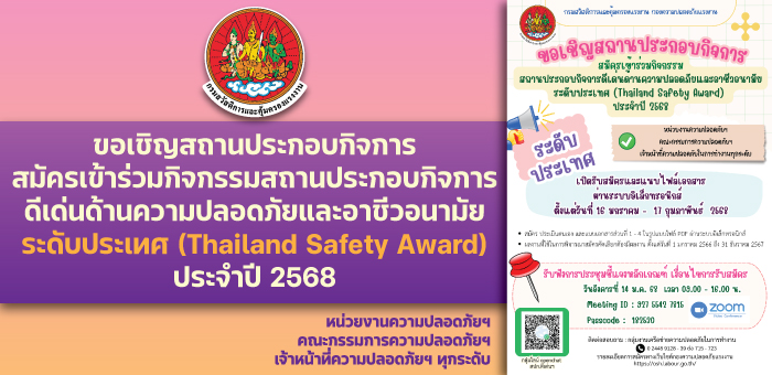กิจกรรมสถานประกอบกิจการดีเด่นด้านความปลอดภัยและอาชีวอนามัย ระดับประเทศ (Thailand Safety Award) ประจำปี ๒๕๖๘