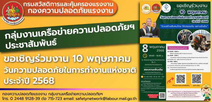 กิจกรรม การจัดงาน ๑๐ พฤษภาคม วันความปลอดภัยในการทำงานแห่งชาติ ประจำปี ๒๕๖๘