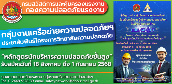 ประชาสัมพันธ์โครงการวิทยาลัยความปลอดภัย หลักสูตรนักบริหารความปลอดภัยขั้นสูง รุ่นที่ ๗ ประจำปี ๒๕๖๘