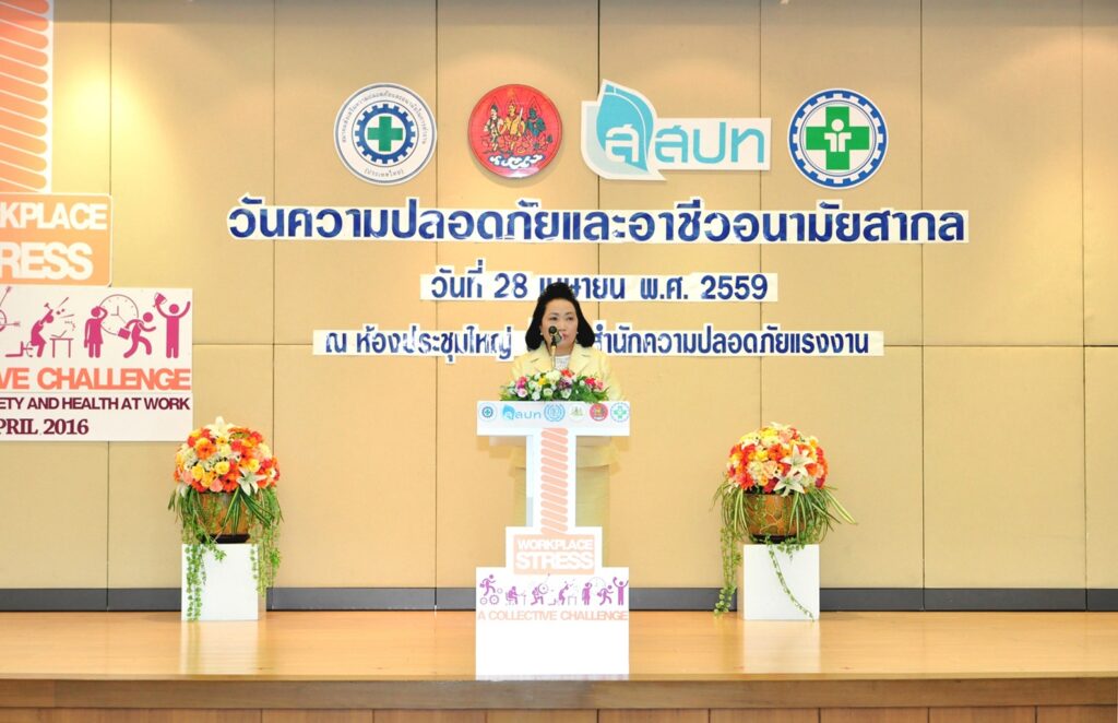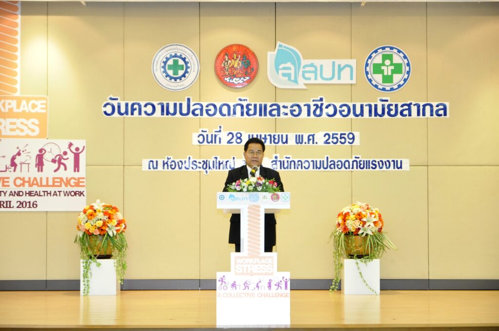 กรมสวัสดิการและคุ้มครองแรงงาน กระทรวงแรงงาน จัดงาน วันความปลอดภัยและอาชีวอนามัยสากล (World Day for Safety and Health at Work) ในวันที่ ๒๘ เมษายนของทุกปี โดยใน ปี ๒๕๕๙ กำหนดหัวข้อการรณรงค์ คือ “Workplace Stress : A Collective Challenge” ณ สำนักความปลอดภัยแรงงาน อาคารกรมสวัสดิการและคุ้มครองแรงงาน (ส่วนแยกตลิ่งชัน) ร่วมกับภาคีเครือข่าย คือ