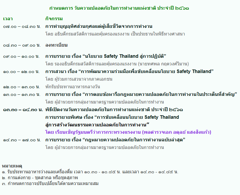 กำหนดจัดงาน ๑๐ พฤษภาคม วันความปลอดภัยในการทำงานแห่งชาติ ประจำปี ๒๕๖๑