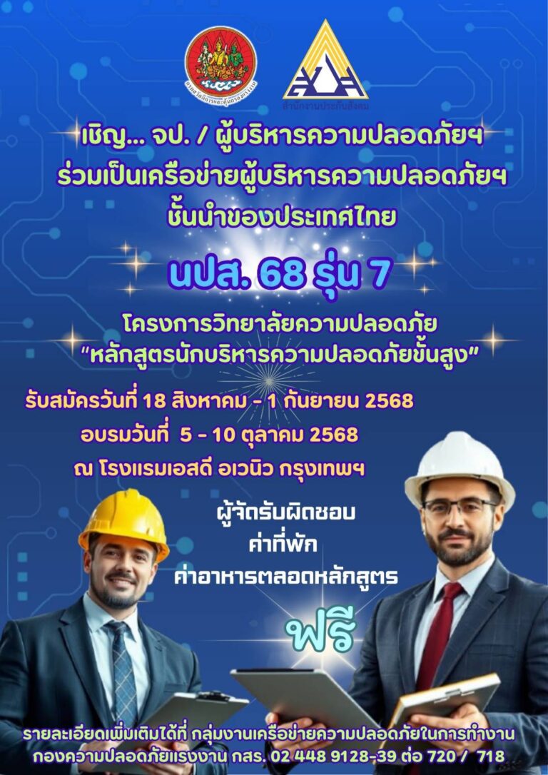 ประชาสัมพันธ์โครงการวิทยาลัยความปลอดภัย หลักสูตรนักบริหารความปลอดภัยขั้นสูง รุ่นที่ ๗ ประจำปี ๒๕๖๘