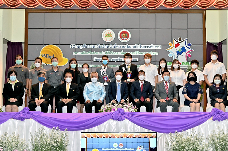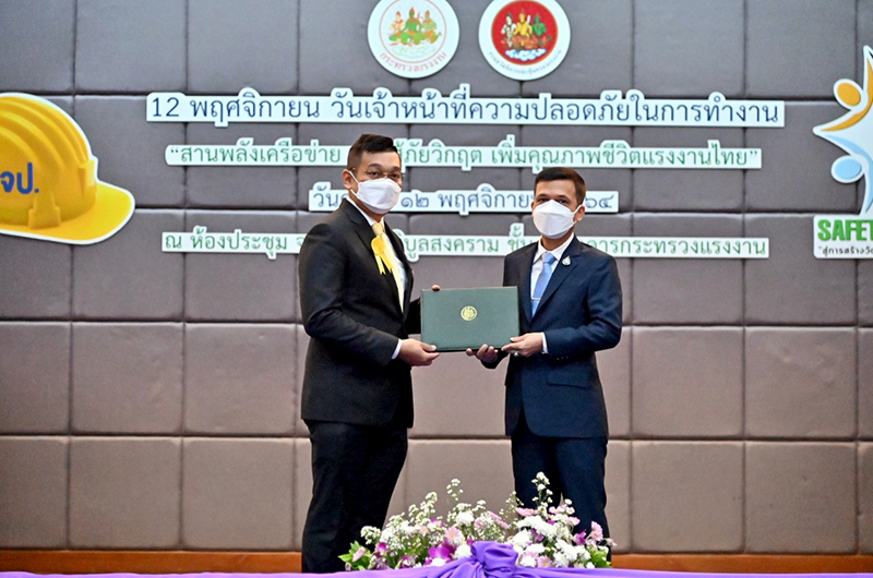 วันศุกร์ที่ ๑๒ พฤศจิกายน ๒๕๖๔ เวลา ๐๙.๐๐ น. นายสุชาติ ชมกลิ่น รัฐมนตรีว่าการกระทรวงแรงงาน มอบหมายให้ ายนิยม สองแก้ว อธิบดีกรมสวัสดิการและคุ้มครองแรงงาน เป็นประธานเปิดงาน 12 พฤศจิกายน วันเจ้าหน้าที่ความปลอดภัยในการทำงาน ประจำปี ๒๕๖๔ พร้อมด้วยนายบุญสงค์ ทัพชัยยุทธ์ เลขาธิการสำนักงานประกันสังคม ผู้แทนกรมการจัดหางาน ผู้แทนกรมพัฒนาฝีมือแรงงาน และผู้บริหารกรมสวัสดิการและคุ้มครองแรงงาน ร่วมเป็นเกียรติ โดยนางสาวปรียานันท์ ลิขิตศานต์ ผู้อำนวยการกองความปลอดภัยแรงงาน กล่าวรายงานวัตถุประสงค์การจัดงานภายใต้แนวคิด “สานพลังเครือข่าย จป. สู้ภัยวิกฤต เพิ่มคุณภาพชีวิตแรงงานไทย” และมอบรางวัลสถานประกอบกิจการดีเด่นด้านความปลอดภัยและอาชีวอนามัยของอาเซียน (ASEAN – OSHNET Award) จำนวน 2 รางวัล พร้อมทั้งมอบวุฒิบัตรผู้ผ่านการอบรมโครงการพัฒนานักบริหารความปลอดภัยขั้นสูง จำนวน 33 คน ณ ห้องประชุม จอมพล ป.พิบูลสงคราม ชั้น 5 กระทรวงแรงงาน