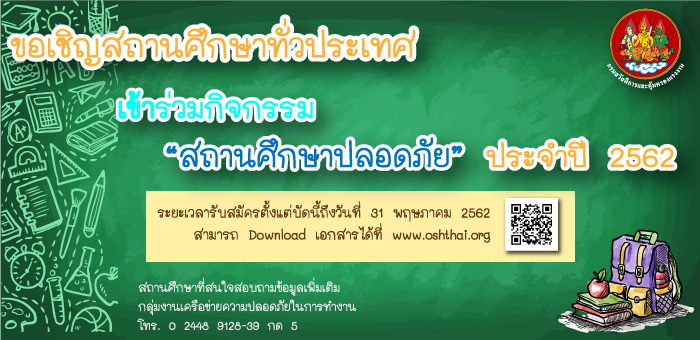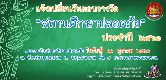 ประกาศผล กิจกรรม “สถานศึกษาปลอดภัย” ประจำปี ๒๕๖๑