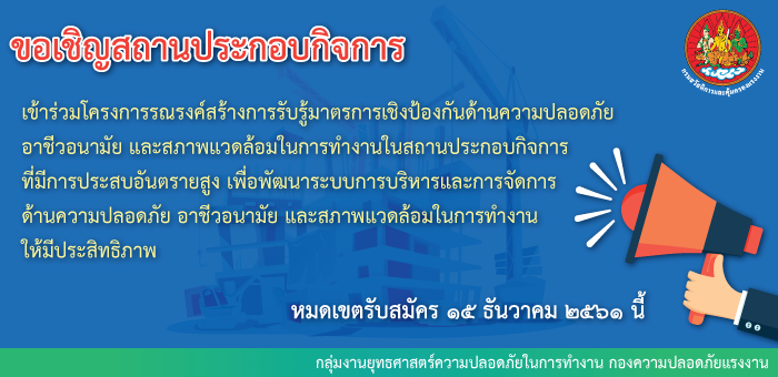โครงการรณรงค์สร้างการรับรู้มาตรการเชิงป้องกันด้านความปลอดภัยฯ ในสถานประกอบกิจการ ที่มีการประสบอันตรายสูง