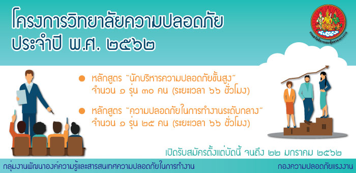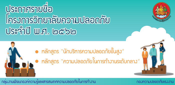 ประกาศรายชื่อ ผู้ได้รับการคัดเลือกโครงการวิทยาลัยความปลอดภัย ประจำปี พ.ศ. ๒๕๖๒