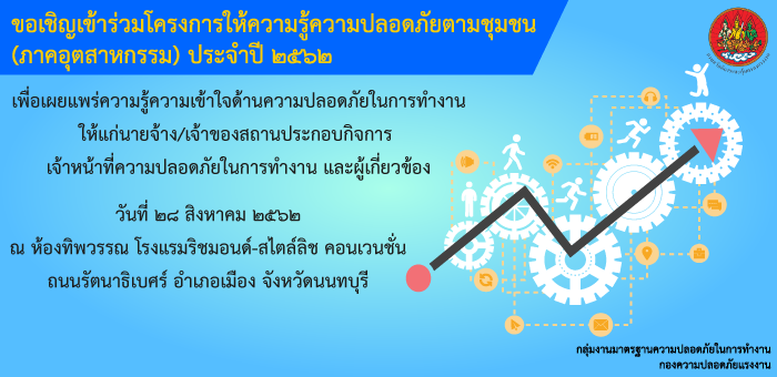 ขอเชิญเข้าร่วมโครงการให้ความรู้ความปลอดภัยตามชุมชน (ภาคอุตสาหกรรม) ประจำปี ๒๕๖๒