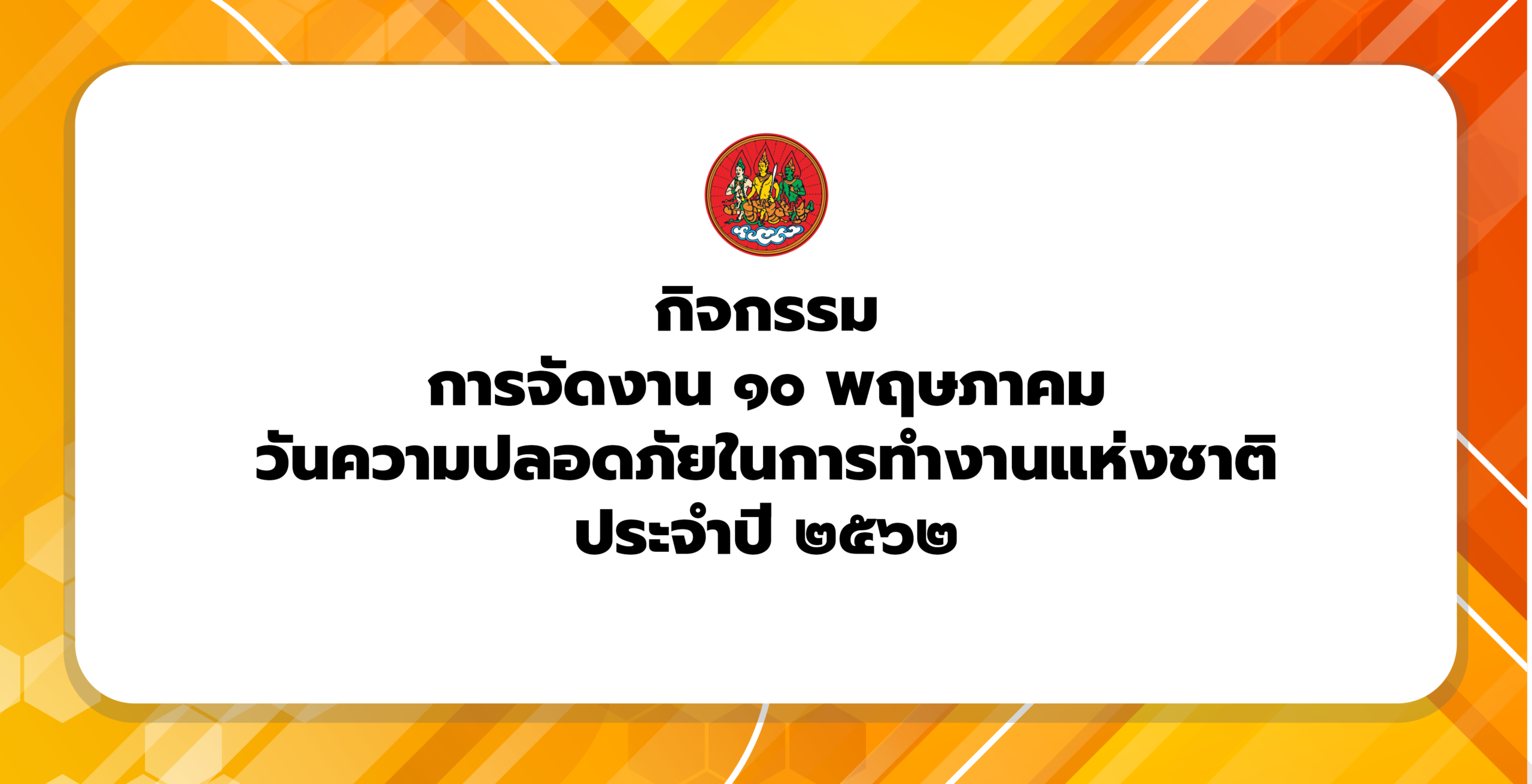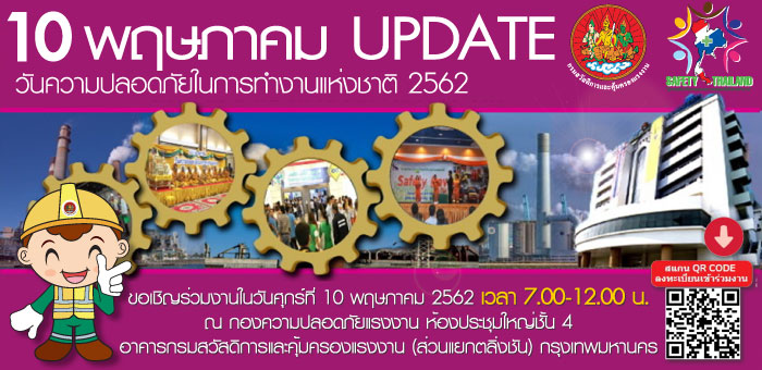 ขอเชิญร่วมงาน ๑๐ พฤษภาคม วันความปลอดภัยในการทำงานแห่งชาติ ประจำปี ๒๕๖๒