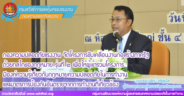 กองความปลอดภัยแรงงาน จัดโครงการขับเคลื่อนงานก่อสร้างภาครัฐด้วยกลไกของกฎหมาย รุ่นที่ ๒