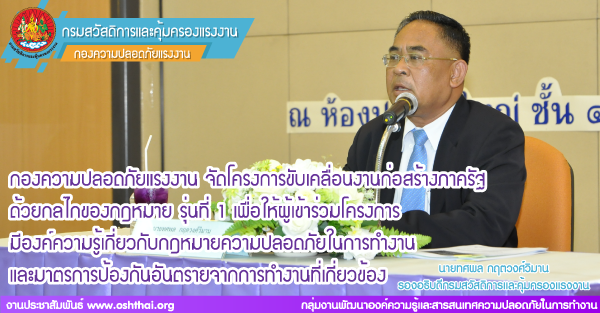 กองความปลอดภัยแรงงาน จัดโครงการขับเคลื่อนงานก่อสร้างภาครัฐด้วยกลไกของกฎหมาย รุ่นที่ ๑