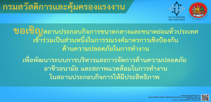 โครงการขับเคลื่อนความปลอดภัยและอาชีวอนามัยของประเทศไทย (Safety Thailand) เร่งรัดมาตรการเชิงป้องกันตามปัจจัยเสี่ยง