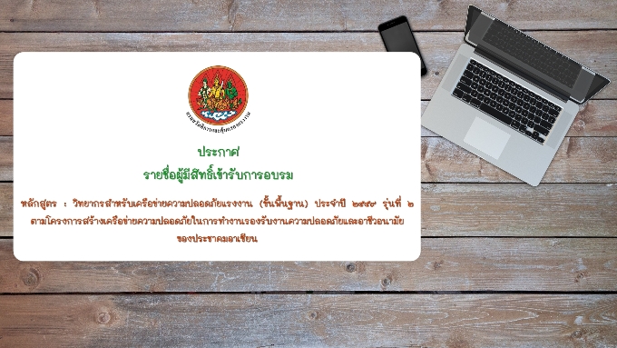 ประกาศรายชื่อ โครงการสร้างเครือข่ายความปลอดภัยในการทำงาน หลักสูตร : วิทยากรสำหรับเครือข่ายความปลอดภัยแรงงาน (ขั้นพื้นฐาน) ประจำปี ๒๕๕๙