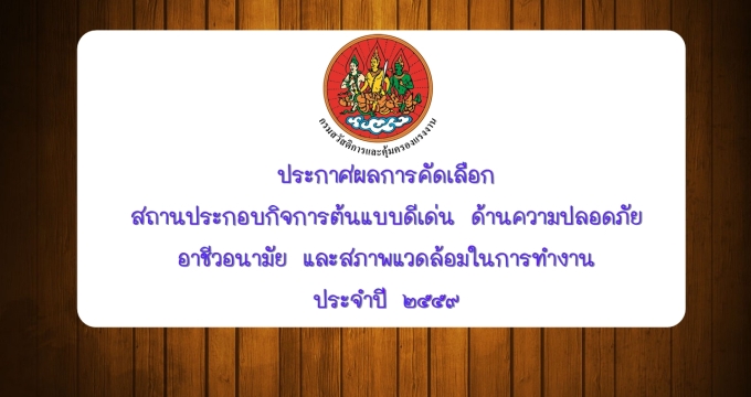 ประกาศผลการคัดเลือกสถานประกอบกิจการต้นแบบดีเด่นฯ ประจำปี ๒๕๕๙