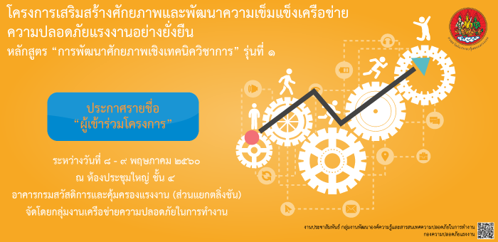 โครงการเสริมสร้างศักยภาพและพัฒนาความเข็มแข็งเครือข่ายความปลอดภัยแรงงานอย่างยั่งยืน หลักสูตร “การพัฒนาศักยภาพเชิงเทคนิควิชาการ” รุ่นที่ ๑