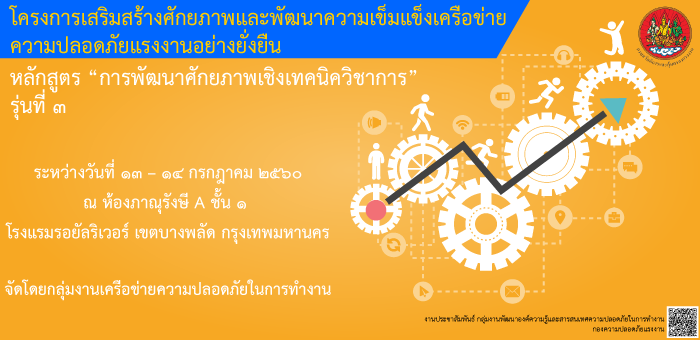โครงการเสริมสร้างศักยภาพและพัฒนาความเข็มแข็งเครือข่ายความปลอดภัยแรงงานอย่างยั่งยืน หลักสูตร “การพัฒนาศักยภาพเชิงเทคนิควิชาการ” รุ่นที่ ๓