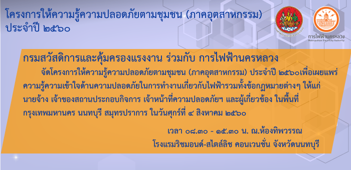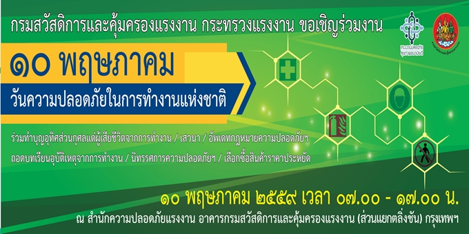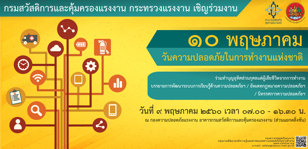 ขอเชิญร่วมงาน ๑๐ พฤษภาคม วันความปลอดภัยในการทำงานแห่งชาติ ประจำปี ๒๕๖๐