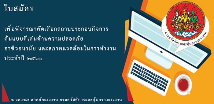 โครงการประกวดสถานประกอบกิจการต้นแบบดีเด่นด้านความปลอดภัย อาชีวอนามัย และสภาพแวดล้อมในการทำงาน ประจำปี ๒๕๖๐