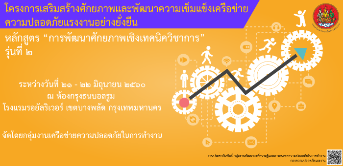 โครงการเสริมสร้างศักยภาพและพัฒนาความเข็มแข็งเครือข่ายความปลอดภัยแรงงานอย่างยั่งยืน หลักสูตร “การพัฒนาศักยภาพเชิงเทคนิควิชาการ” รุ่นที่ ๒
