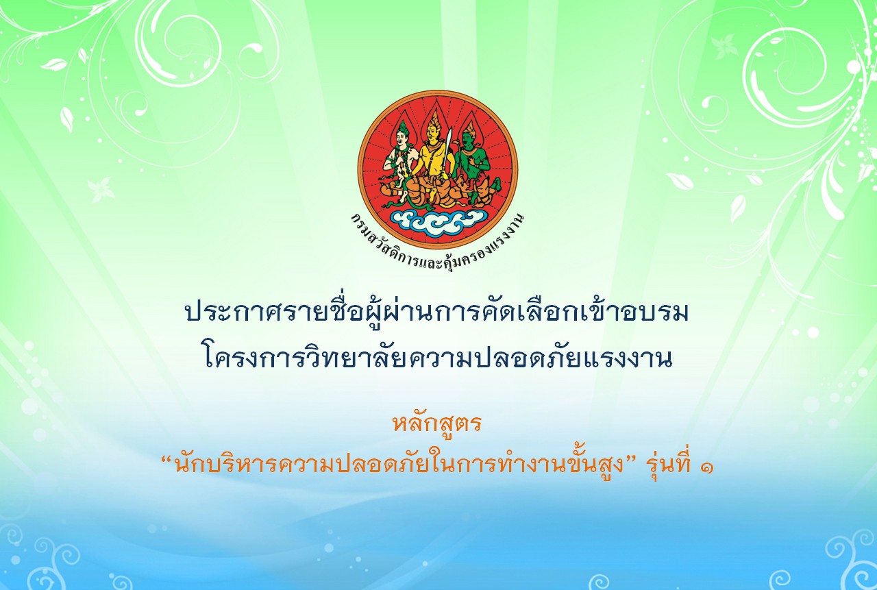 โครงการวิทยาลัยความปลอดภัย หลักสูตร ” นักบริหารความปลอดภัยในการทำงานขั้นสูง”