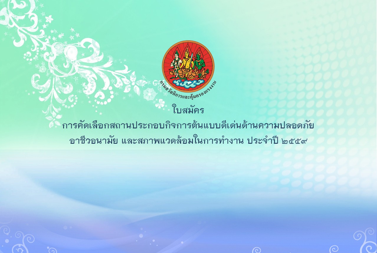 การคัดเลือกสถานประกอบกิจการต้นแบบ ดีเด่นฯ ประจำปี ๒๕๕๙