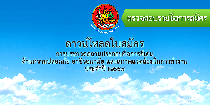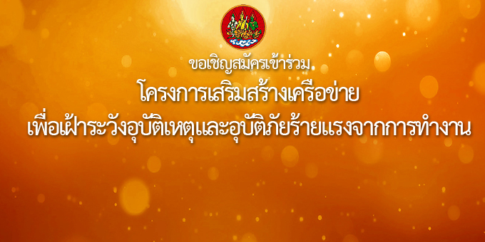 ขอเชิญสมัครกิจกรรมการรณรงค์ลดสถิติอุบัติเหตุจากการทำงานให้เป็นศูนย์ ประจำปี ๒๕๕๘