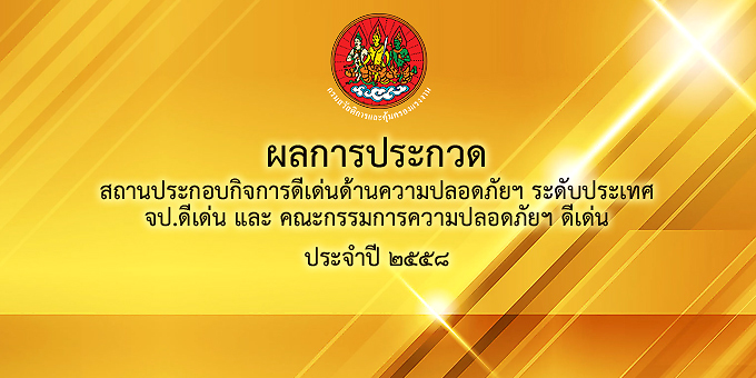ผลการประกวดสปก.ดีเด่น ระดับประเทศ จป.ดีเด่น และ คปอ.ดีเด่น ประจำปี ๒๕๕๘
