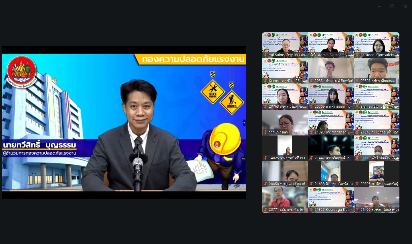 พิธีเปิดการอบรมโครงการ “อบรมฟรี SAFETY 4 ALL ปลอดภัยทุกมิติ ยกระดับสิทธิแรงงานไทย” ผ่านระบบออนไลน์ จัดโดย บริษัท คิด เพื่อความปลอดภัยและสิ่งแวดล้อม จำกัด