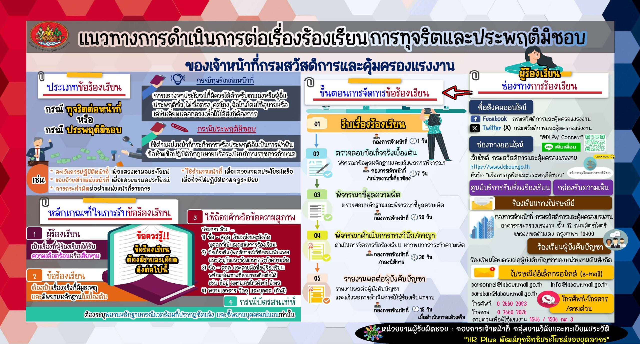 แนวทางการดำเนินการต่อเรื่องร้องเรียนการทุจริตและประพฤติมิชอบของเจ้าหน้าที่กรมสวัสดิการและคุ้มครองแรงงาน