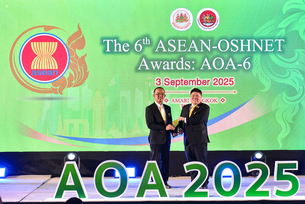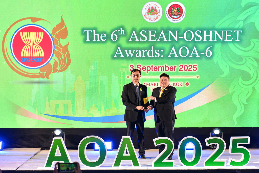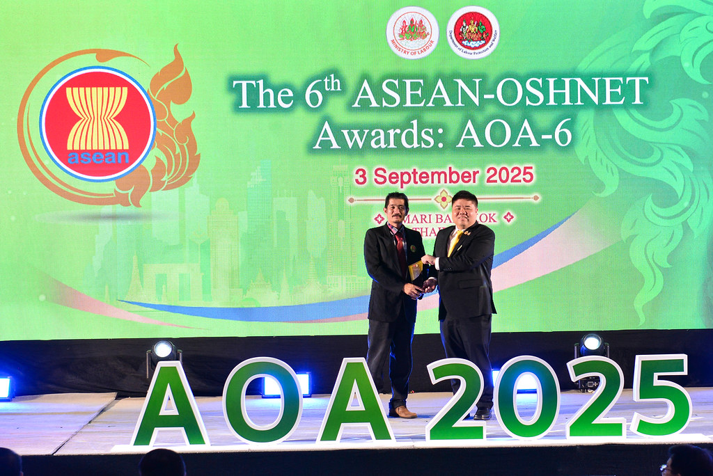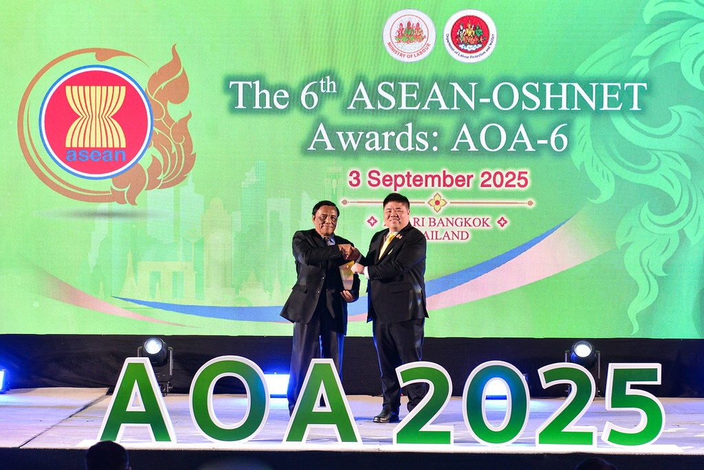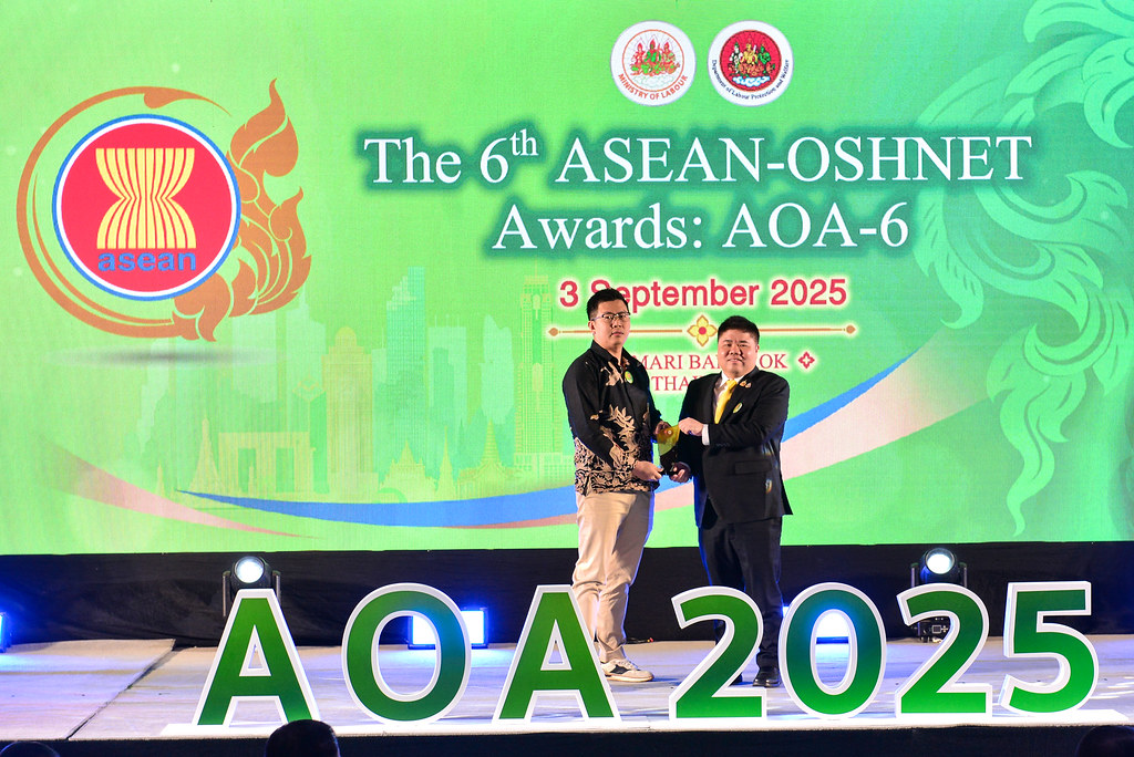 The 6th ASEAN-OSHNET Awards was conducted on the 3rd September 2025 in conjunction with the 12th ASEAN-OSHNET Conference, held under the theme “Advancing Innovation and Technology towards Sustainable Occupational Safety and Health (OSH)”, organized by the Occupational Safety and Health Division, Department of Labour Protection and Welfare, Ministry of Labour of Thailand.