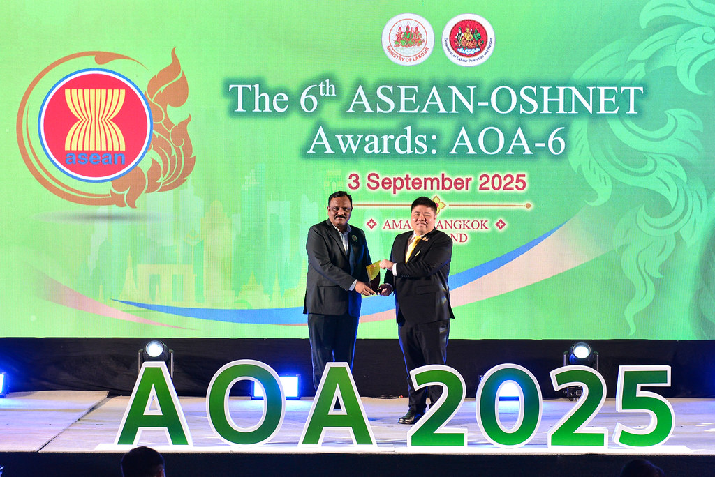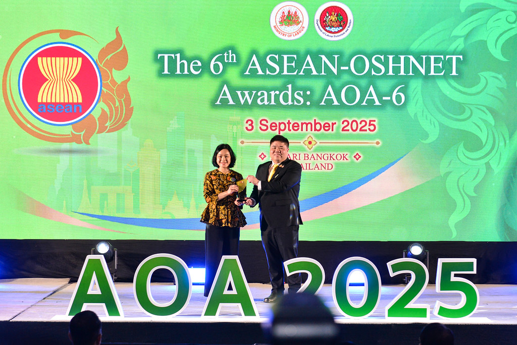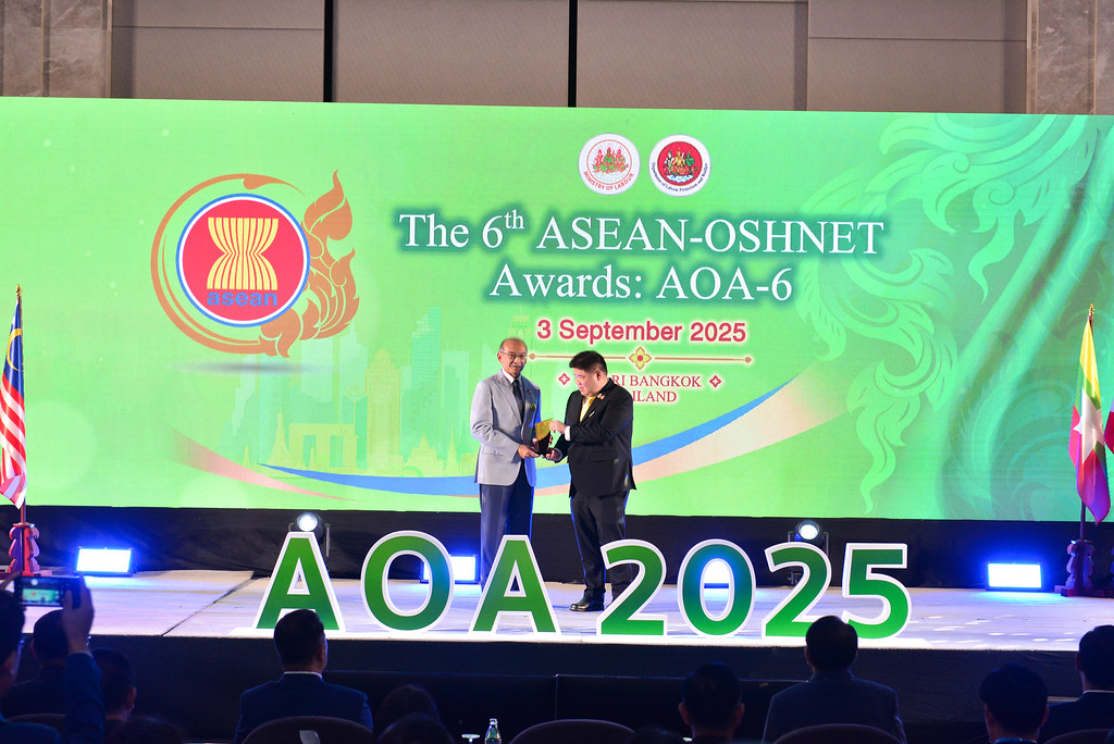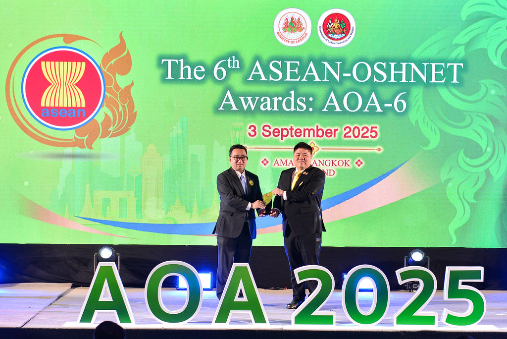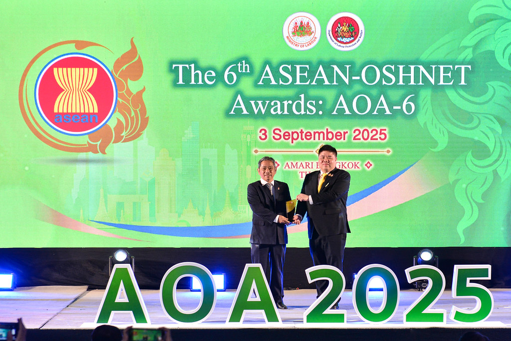 The 6th ASEAN-OSHNET Awards was conducted on the 3rd September 2025 in conjunction with the 12th ASEAN-OSHNET Conference, held under the theme “Advancing Innovation and Technology towards Sustainable Occupational Safety and Health (OSH)”, organized by the Occupational Safety and Health Division, Department of Labour Protection and Welfare, Ministry of Labour of Thailand.