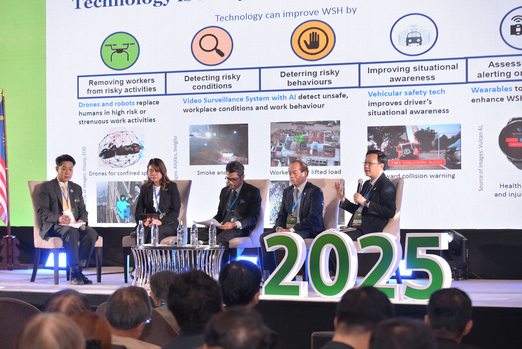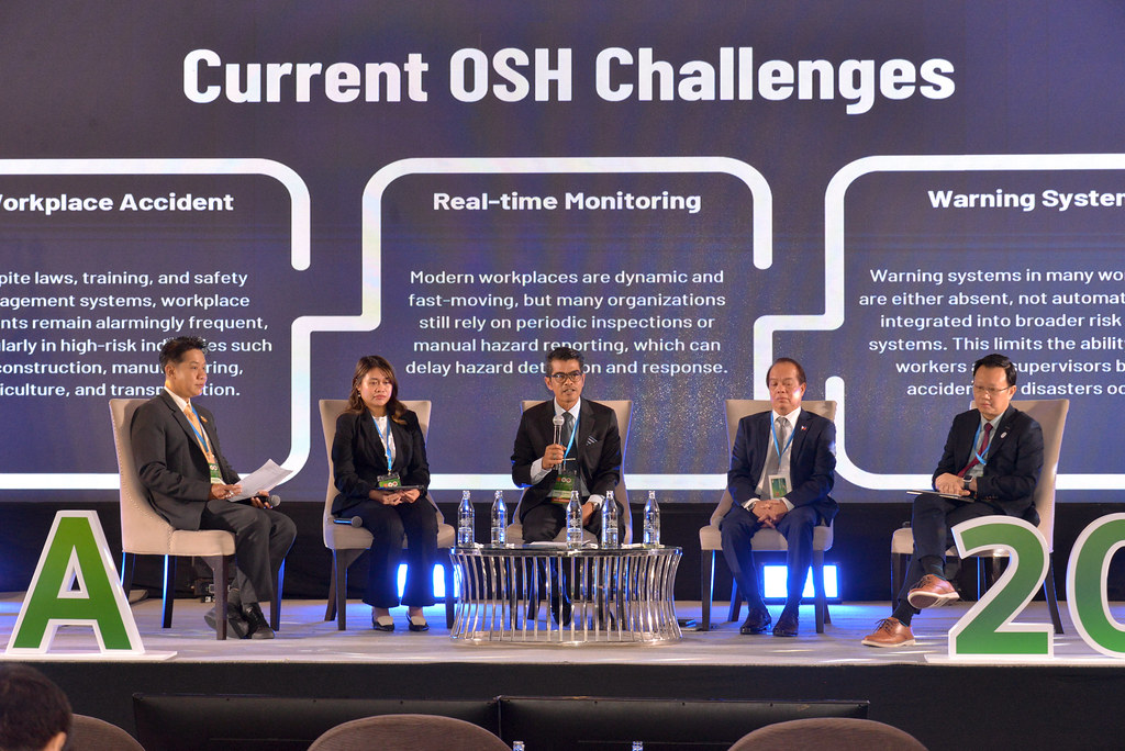 – Panel Discussion: Advancing Innovation and Technology towards Sustainable OSH with participation from Indonesia, Malaysia, the Philippines, and Singapore, moderated by Thailand. Each country presented how innovation and technology are applied to improve national OSH practices, as well as how they address challenges and opportunities arising from artificial intelligence and automation.